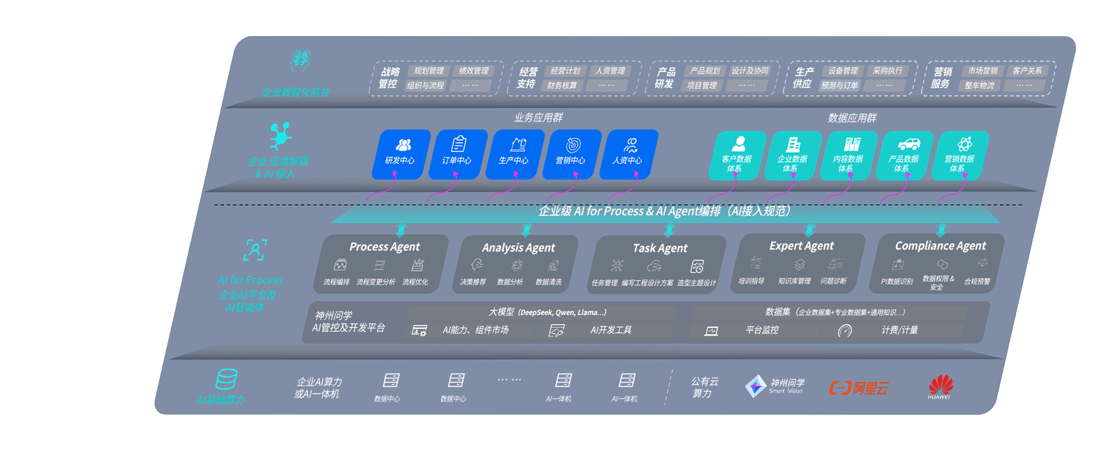 端到端的一站式AI工作空间深度融合了从企业战略规划到日常经营的全流程业务板块,,,定向解决车企内部领域多、、部门多、、、链条长、、、场景碎片化等难题,,,,支持车企快速构建以AI为核心的生产力写作体系,,,,实现任务执行与AI能力的无缝集成与交互